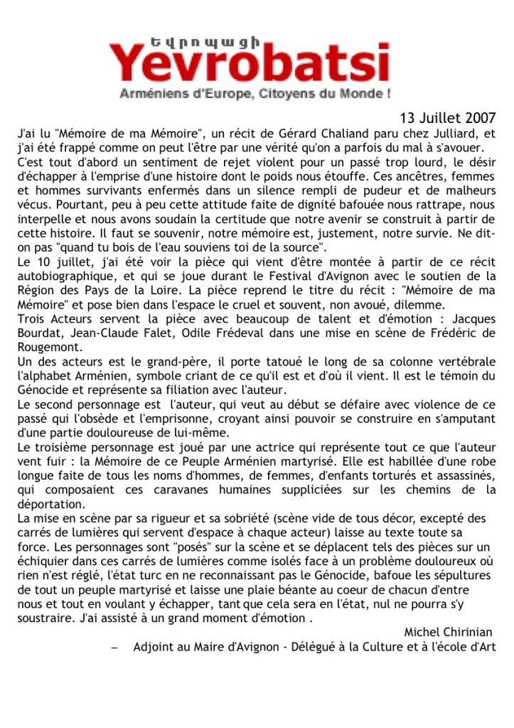 - Mémoire de ma mémoire